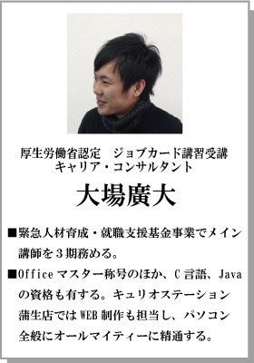 厚生労働省認定 ジョブ・カード講習を受けたキャリア・コンサルタントが、パソコンを使う職業(主にWord,Excelを使用する